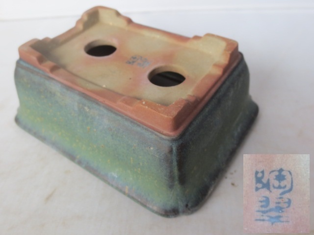 - 【艸】 R7/03/13-4 陶翠 緑釉 盆栽鉢 小花盆 植木鉢 幅10.8センチ 13ma4