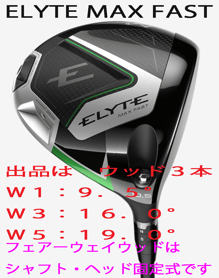 > 新品■2025.2■キャロウェイ■ELYTE-MAX FAST■ウッド3本■W1:9.5/W3:16.0/W5:19.0■LIN-Q GREEN-40 for CALLAWAY カーボン■S■正規品■
