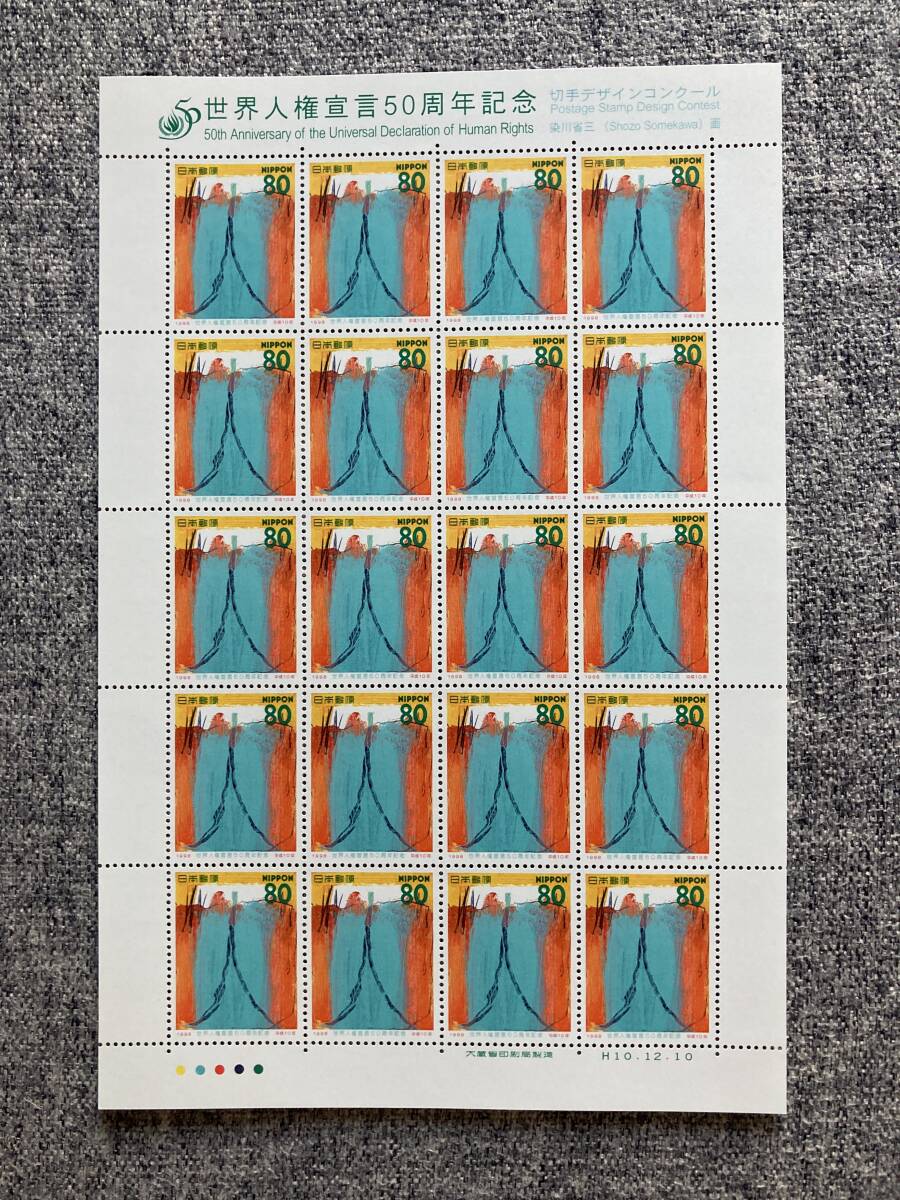 - ★未使用 世界人権宣言50周年記念 切手デザインコンクール 国連人権高等弁務官 最優秀賞作品 ひと 染川省三(スペイン在住) 1998年 80円20枚