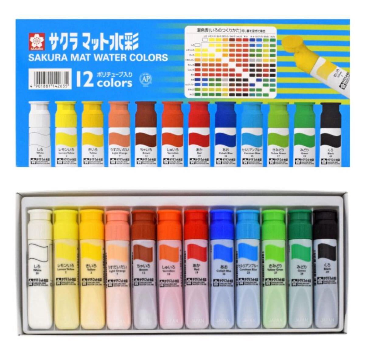 - サクラクレパス 絵の具 マット水彩 ポリチューブ入り 12色セット MW12PR