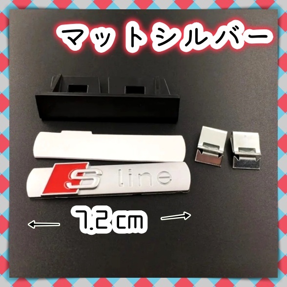 - AUDI アウディ S-Line フロント グリルバッジ エンブレム プレート 3D 立体 フェンダーバッジ リア サイド マットシルバー レッド