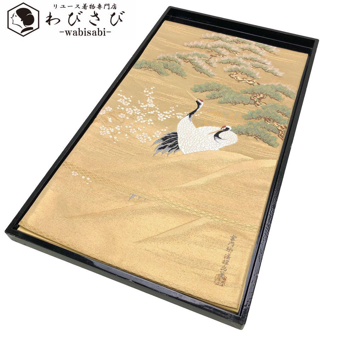> 袋帯 本金泥箔 鶴に松模様 梅 金色 金糸 O-4818 着物 きもの kimono 和服 和装 中古 リサイクル着物 【送料無料】