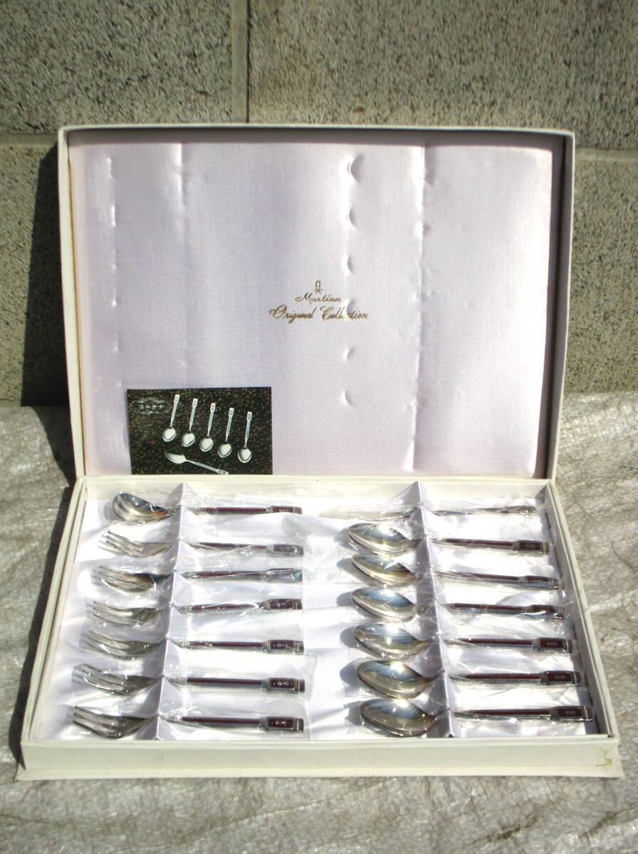 - 未使用・Martian/マーシャン コルチナ デザート スプーン フォーク 他 14本 フルセット 13クロームステンレス 共箱/栞/袋・売切