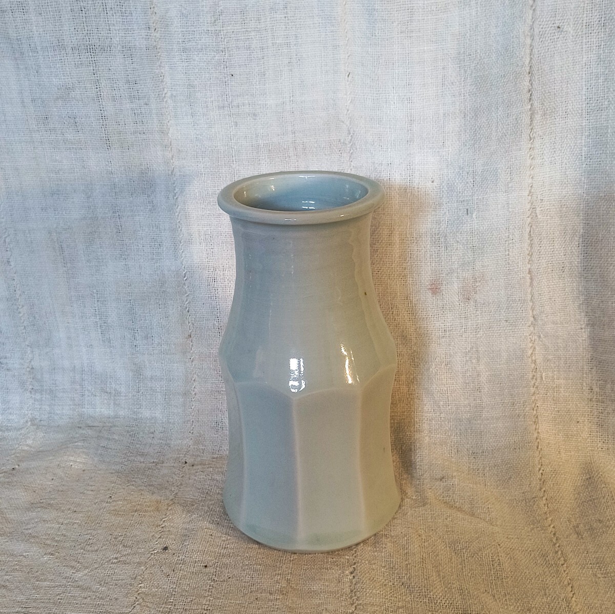 - 瀧田項一 白磁 面取り 花生け 81’ 銘 検) 花瓶 花器 花入 濱田庄司 民芸 骨董 古道具 益子焼倶門窯