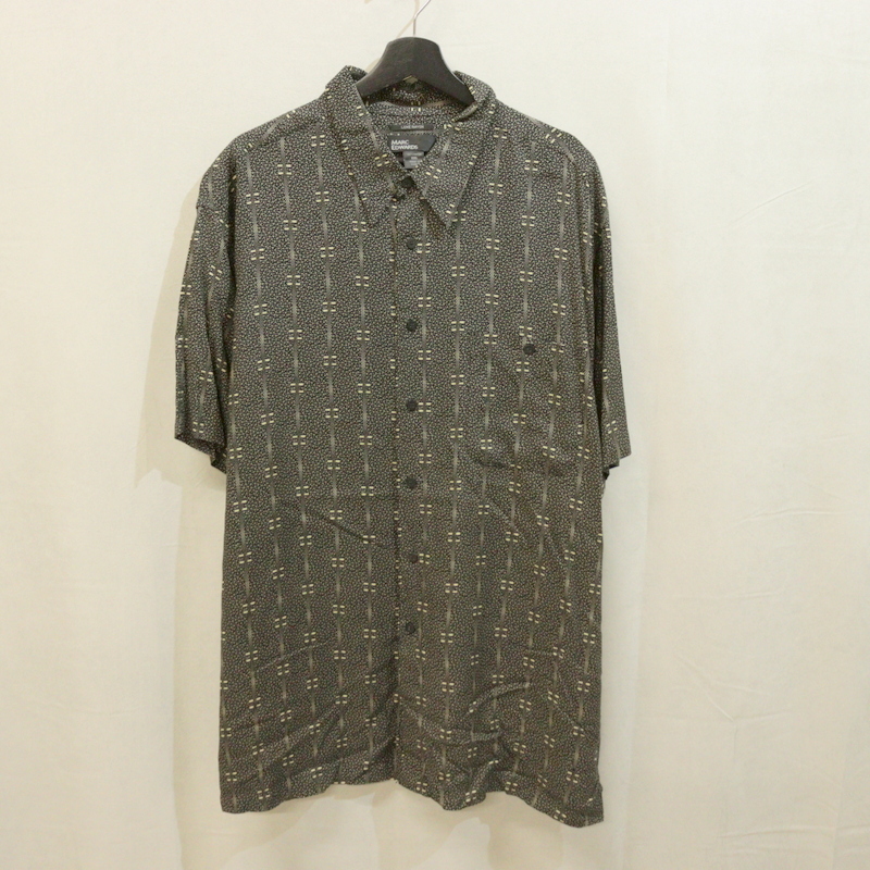 - d432 90sビンテージ MARCEDWARDS 半袖レーヨンシャツ■1990年代製 表記2XLサイズ 黒 総柄 アメカジ ストリート 古着 古着卸 激安 希少