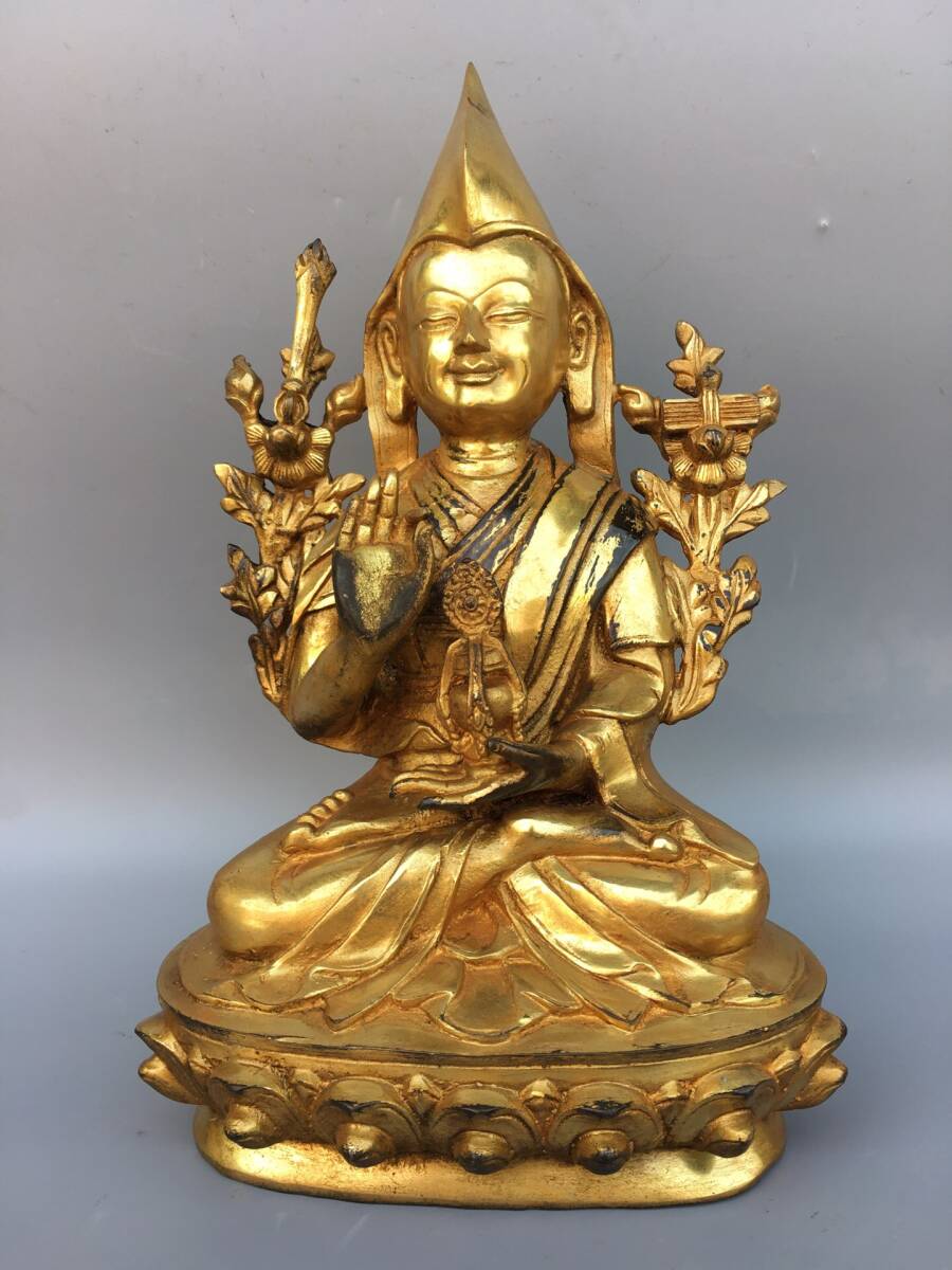 - ▽鴻▽ 銅製 塗金 宗喀巴像 置物 古賞物 中国古玩 中国古美術