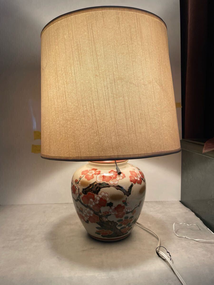 - 九谷焼 高級ランプスタンド 梅 2灯式 ヴィンテージ アンティーク 昭和レトロ 当時物 現状品 テーブルランプ 点灯確認済