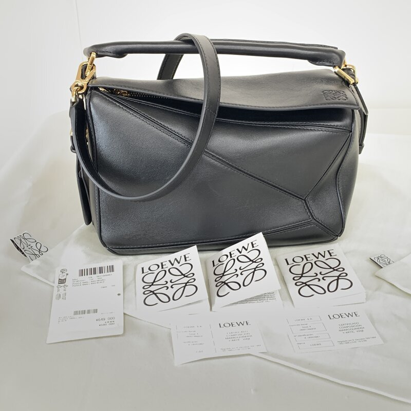 - 極美品 未使用 新作 LOEWE ロエベ フェザーライト パズルバッグ スモールナラパム ブラック×ゴールド 2way IW503AB01LWE80