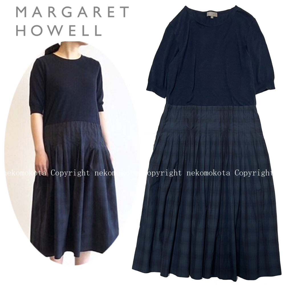 > 19SS マーガレットハウエル リネン コットン ニット ドッキング ドレス ワンピース 2 タータンチェック MARGARET HOWELL 2019