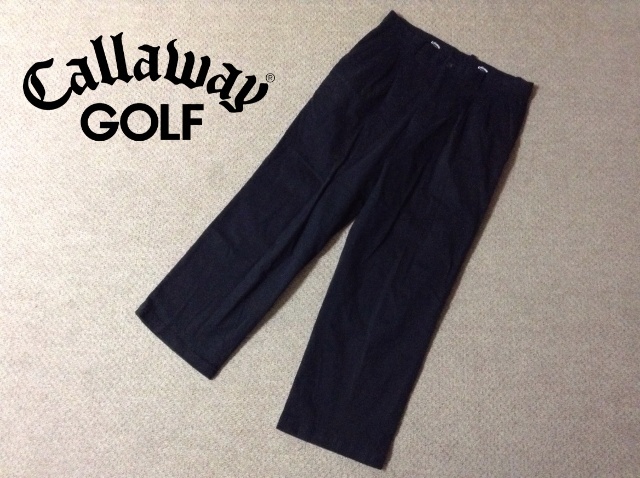> ★中古★キャロウェイ ゴルフ メンズ ゴルフ コットンパンツ ストレッチ 黒 ブラック XLサイズ 刺繍ロゴ 2タック オールド Callaway GOLF