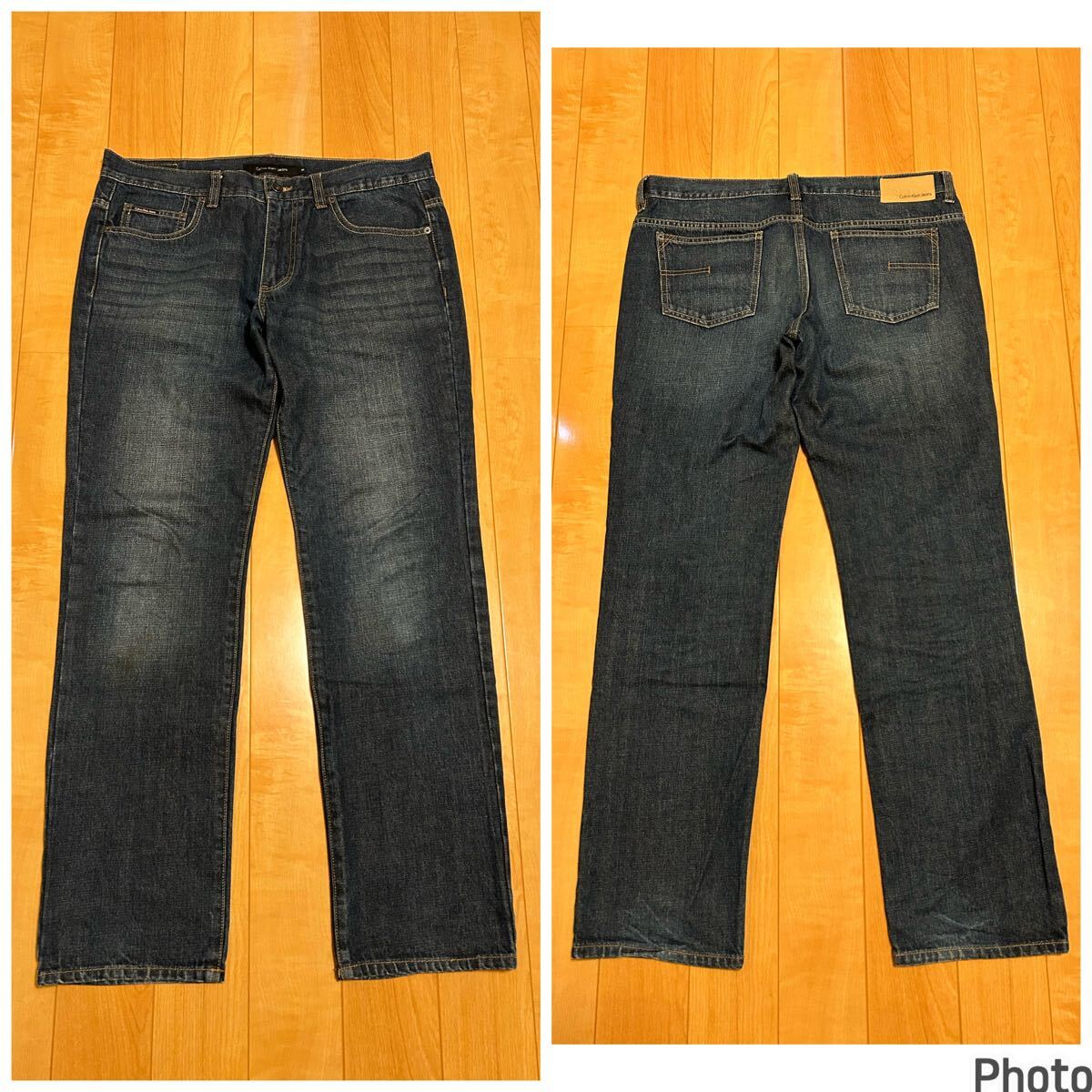 - 良品☆CK・カルバンクラインジーンズ W34L32.股下長め! 濃紺インディゴ色落ち加工デニムパンツ ドーナツボタン リラックスストレート!