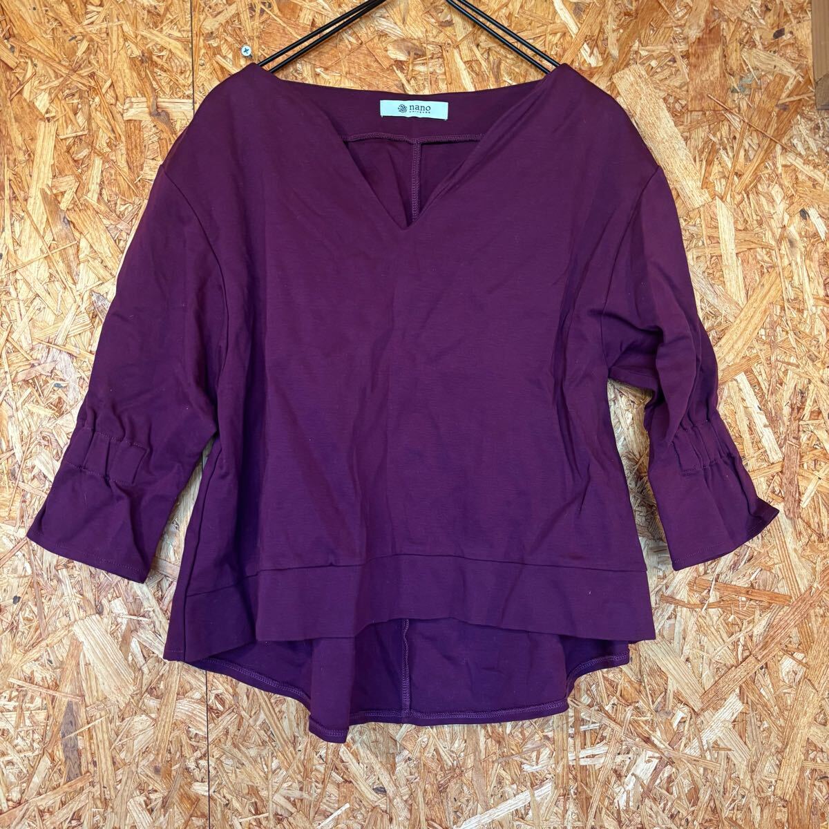 - 美品 nano UNIVERSE トップス Vネック カットソー パープル 七分袖 レディース トップス 4065