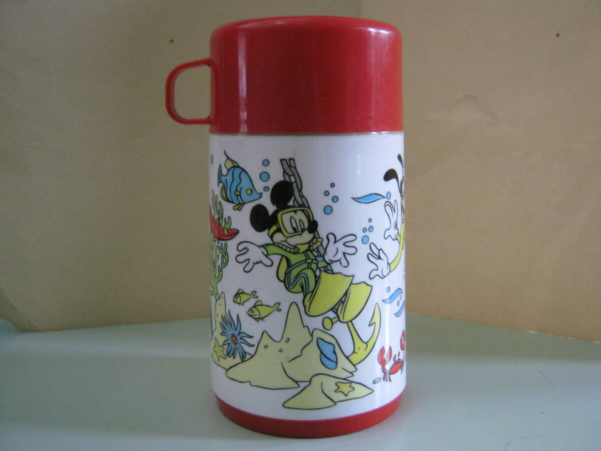 - アラジン ウォルトディズニー ミッキーマウス・プルート・ドナルドダックの海中探検の絵柄の水筒(キャプ部分がカップになる)1960年代