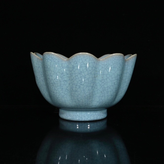 - ▽鴻▽ 宋 汝窯 開片 蓮花紋 碗 古陶瓷品 置物 古賞物 中国古玩 中国古美術