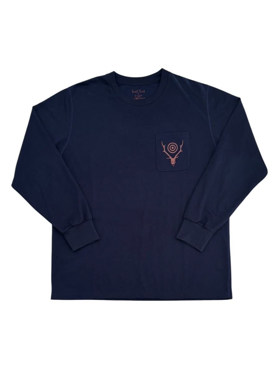 - 【美品】South2 West8 サウスツーウエストエイト 長袖Tシャツ ロンT ネイビー ポケット プリント ポリエステルコットン メンズM