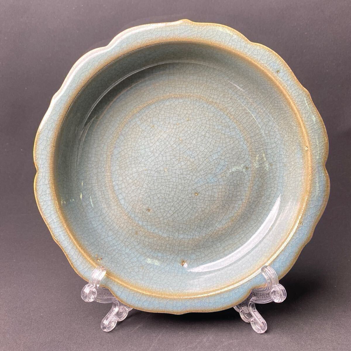- 中国古美術 宋時代 汝窯 青磁 古玩 骨董 時代物 古美術 唐物 当時物 パーティー大皿 食器