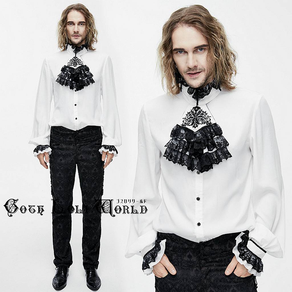 - SHT02302-XL ジャボ風デコレーションゴールドエンブロイダリー 白 ブラウス ゴスロリワールド ゴシック ロック ビジュアル系 V系