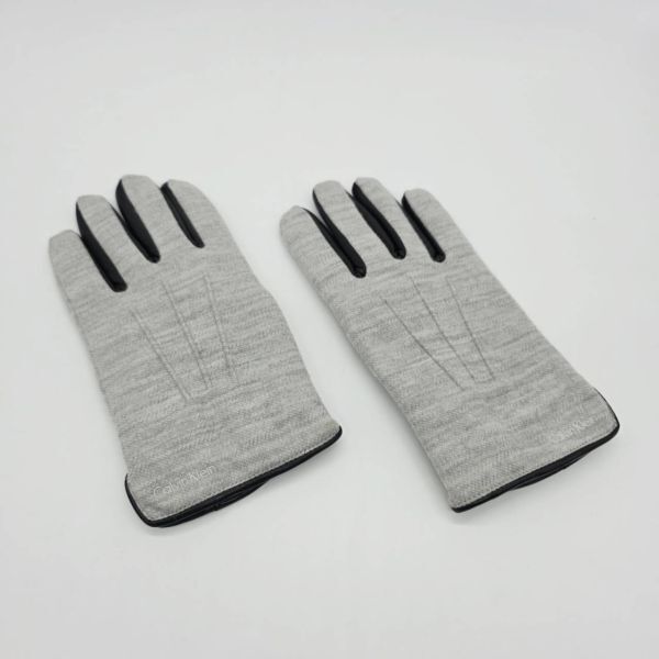 - ■CalvinKlein■カルバンクライン 手袋 全長23cm グレー 黒 レザー 冬 中古品 E-74041