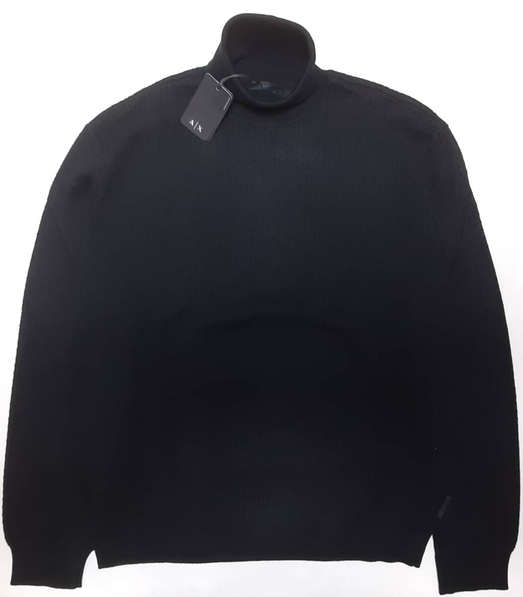 - [新品]ARMANI EXCHANGE ニットジャージ素材の【メンズ・タートルネック】◆2024-25年秋冬モデル サイズ:XL(52相当) ◆色:黒