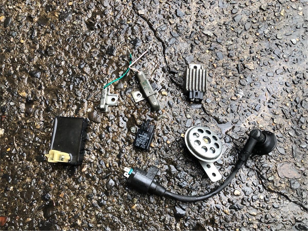 > 58227■ ホンダ DIO ディオ AF18 (1600番台〜) 実働 CDI イグニッションコイル レギュレーター スターターリレー ホーン GWO