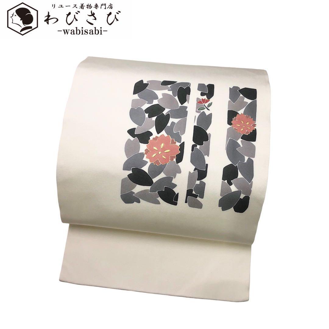 - 名古屋帯 塩瀬 刺繍 桜の花模様 花弁 乳白色 金彩 O-4859 着物 きもの kimono 和服 和装 中古 リサイクル着物 【送料無料】