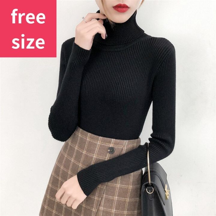 - レディース 暖かい タートルネック 長袖 ニット プルオーバー 冬春 ブラック