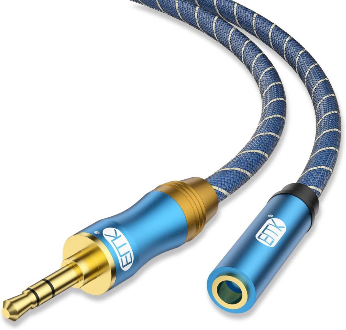 - EMK 3.5mm イヤホン延長ケーブル 3極 TRS オーディオケーブル AUX ケーブル オス-メス 延長オーディオケーブル青(3極/TRS, 5M)