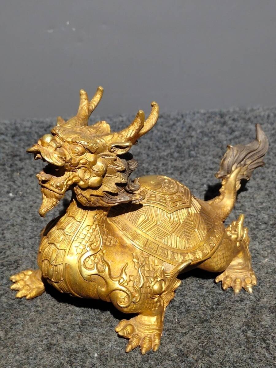 - ▽鴻▽ 銅製 塗金 八卦龍龜 置物 古賞物 中国古玩 中国古美術