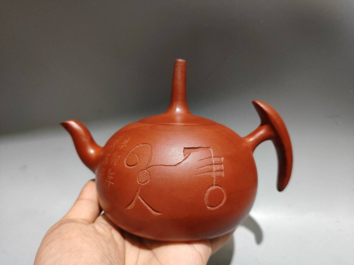 - 『館蔵珍品 紫砂壺 吉祥壺 韓美林款 紅泥 紫砂壺』置物 賞物 貴重物品 収蔵品 中国古美術