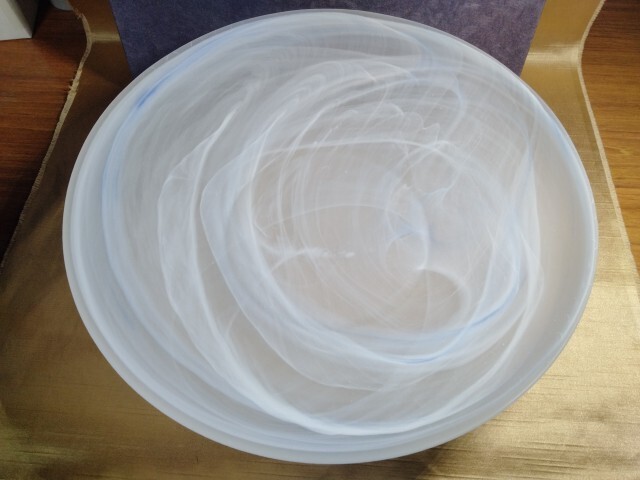 - ガラス 大鉢/中鉢ペア 吹墨青流し 30x7.5/25x6.5cm