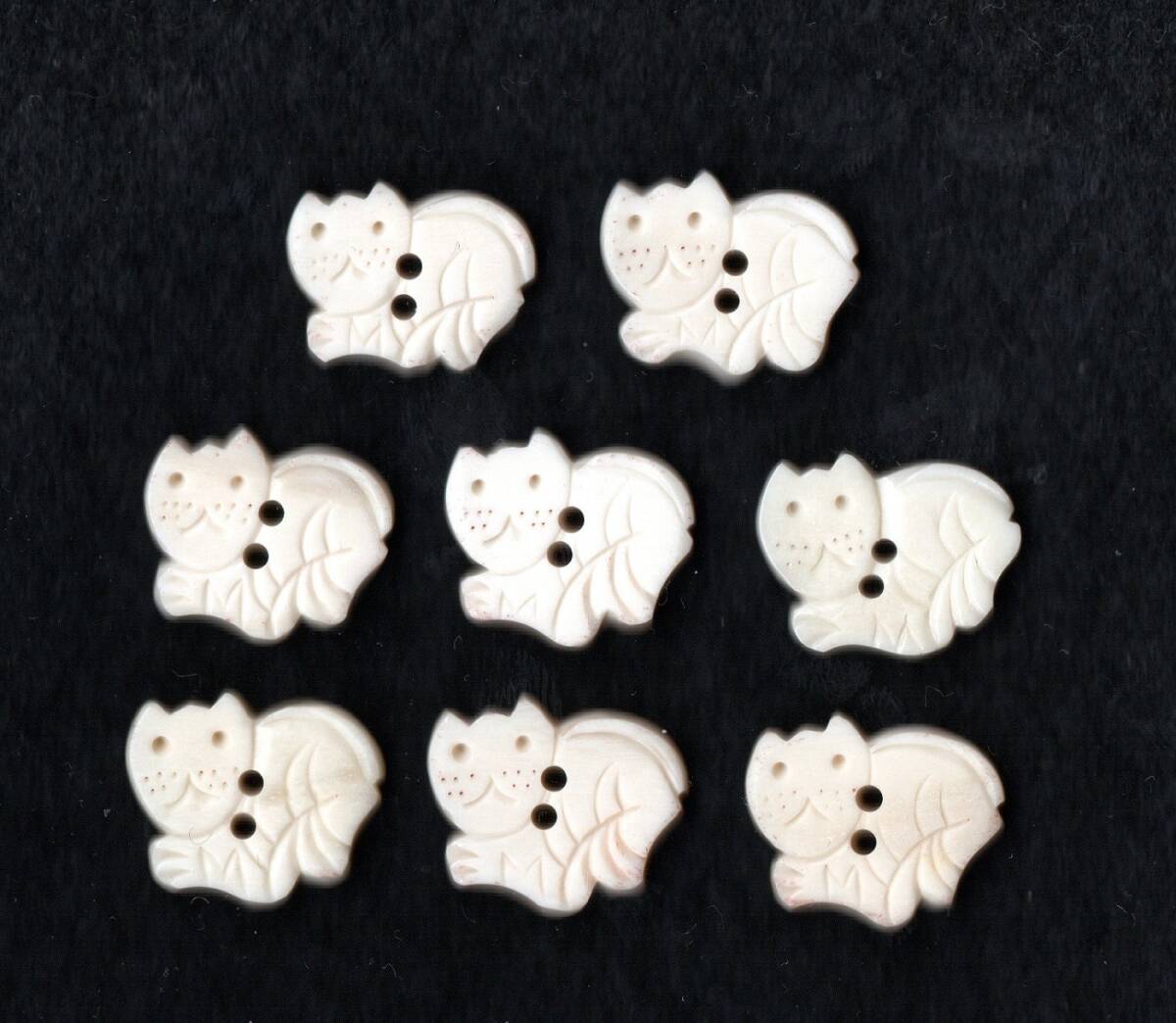 - ◎●天然素材手作りボタン 水牛の骨 8個セット 猫 デザインN0.4 バッファローボーン ねこ ネコ
