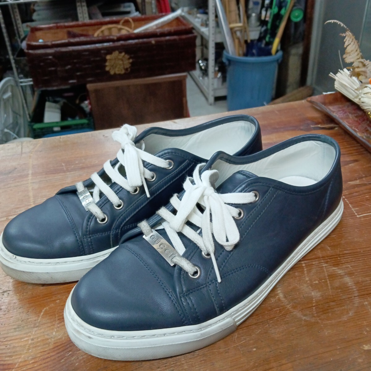 > グッチ/GUCCI スニーカー メンズ レザー ネイビー/紺 7.5/26.5cm 423301 03W Y0171