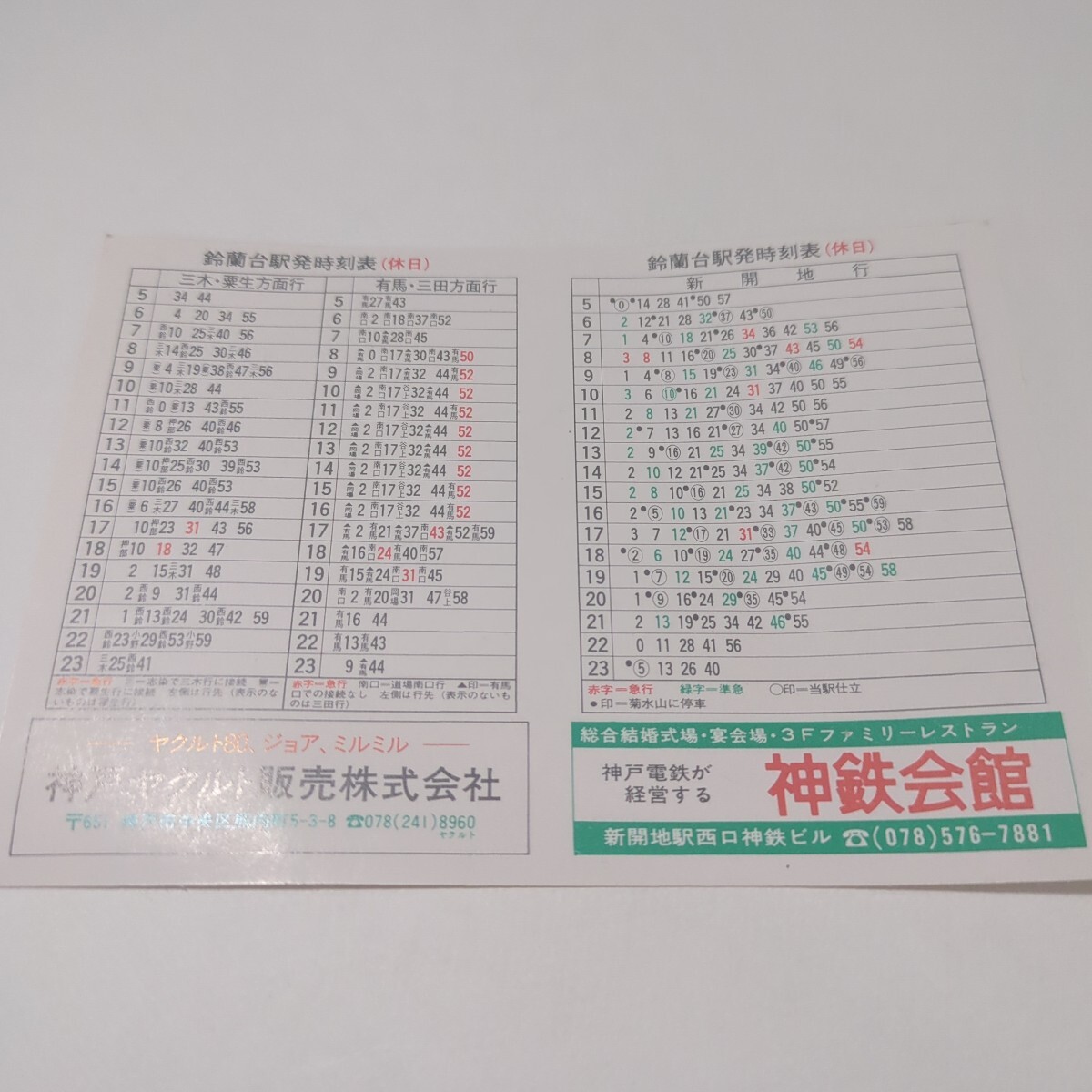 - ★ポケット時刻表 神戸電鉄 鈴蘭台駅 時刻表 昭和60年11月改正 【折り目なし】