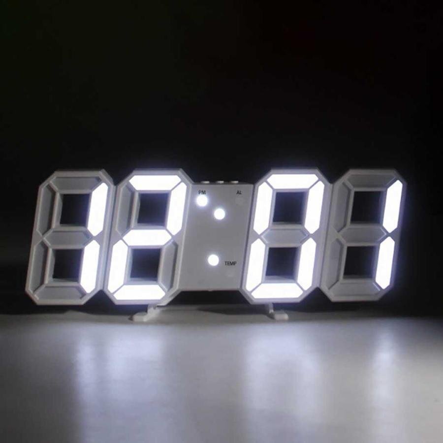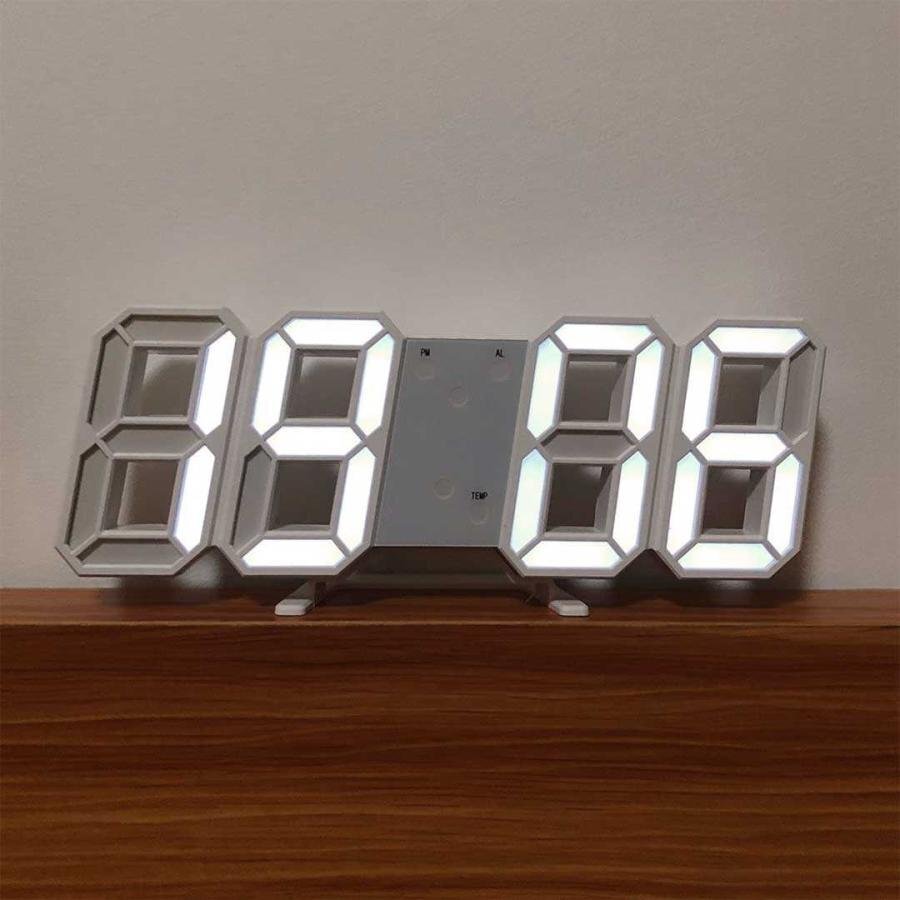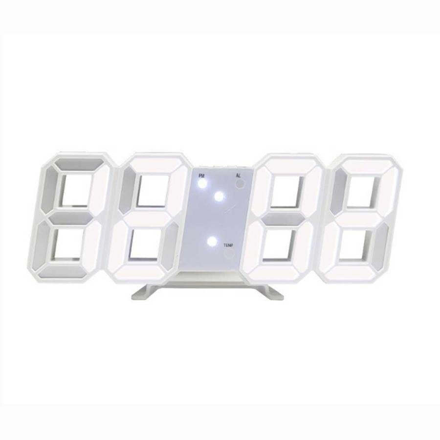 - デジタル時計 シンプル ピュアホワイト 置時計 LED デジタルクロック 3D 数字 壁時計 掛け時計 目覚まし時計