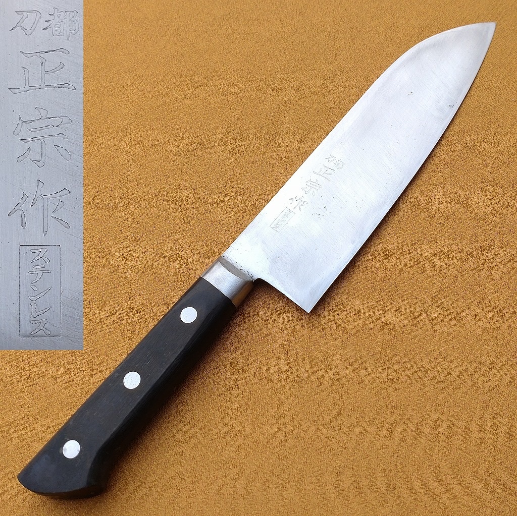 - 万能包丁 刀都 正宗作 ステンレス 刃長約165㎜ 両刃 鍔付 洋包丁 三徳包丁 調理器具 刃物 日本製 【3814T312】【b】