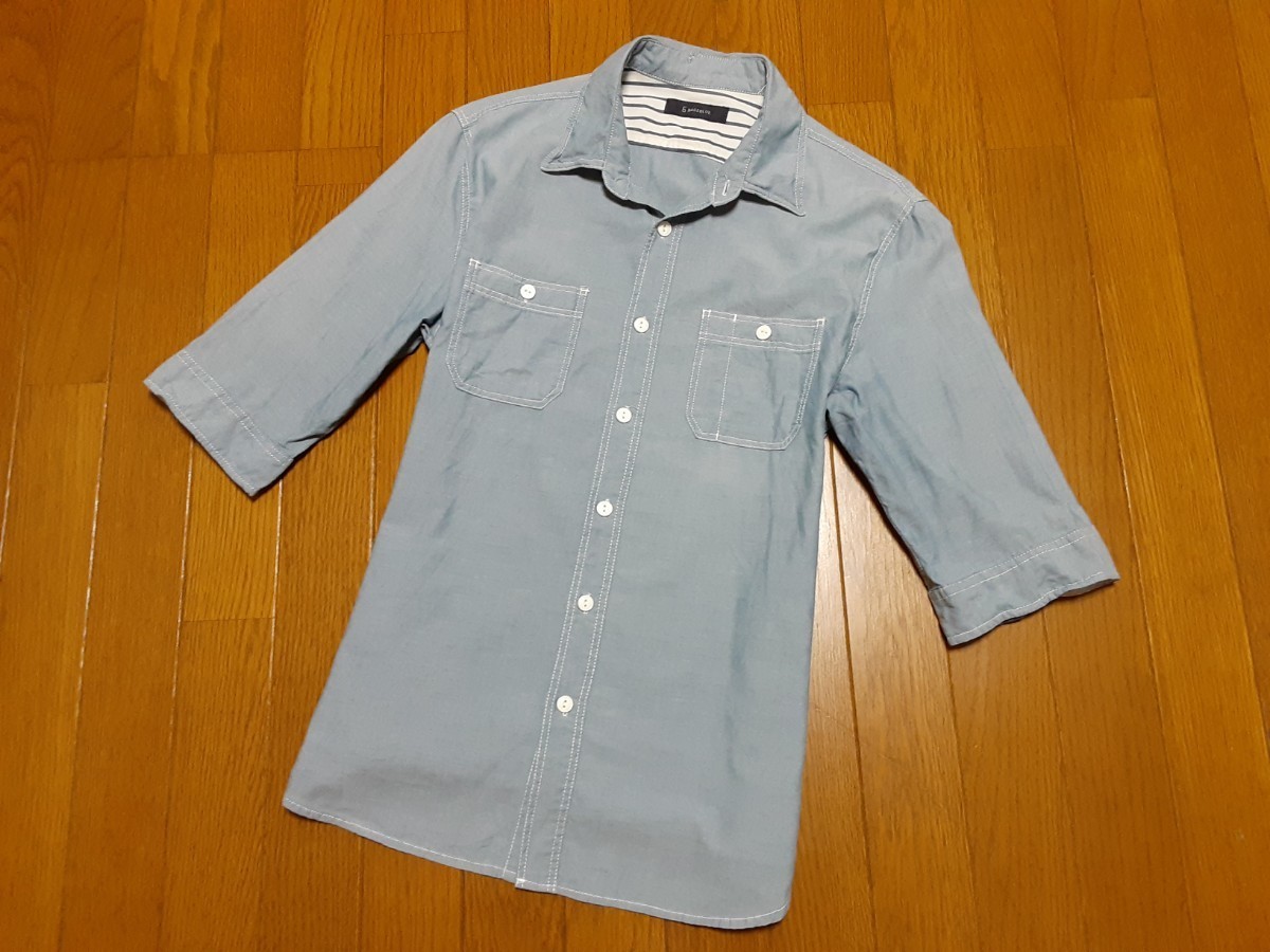 - 送料無料 レイジブルー RAGE BLUE シャンブレーシャツ 7分袖 両胸ポケット ウエスタンテイスト Mサイズ