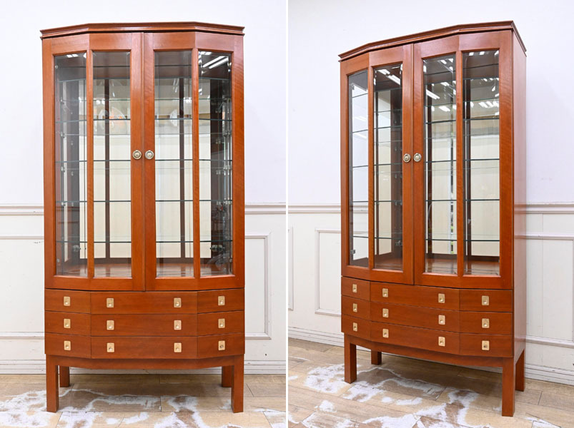 > HA14 購入35万円 日本製 英国調 クラシック 飾り棚 ガラスキャビネット コレクションケース キュリオケース