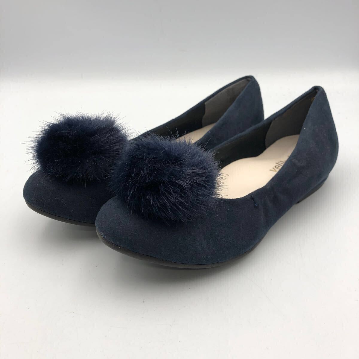 - M855Y velikoko ヴェリココ レディース ファーパンプス 21cm ネイビー スエード調 取り外しファー付き