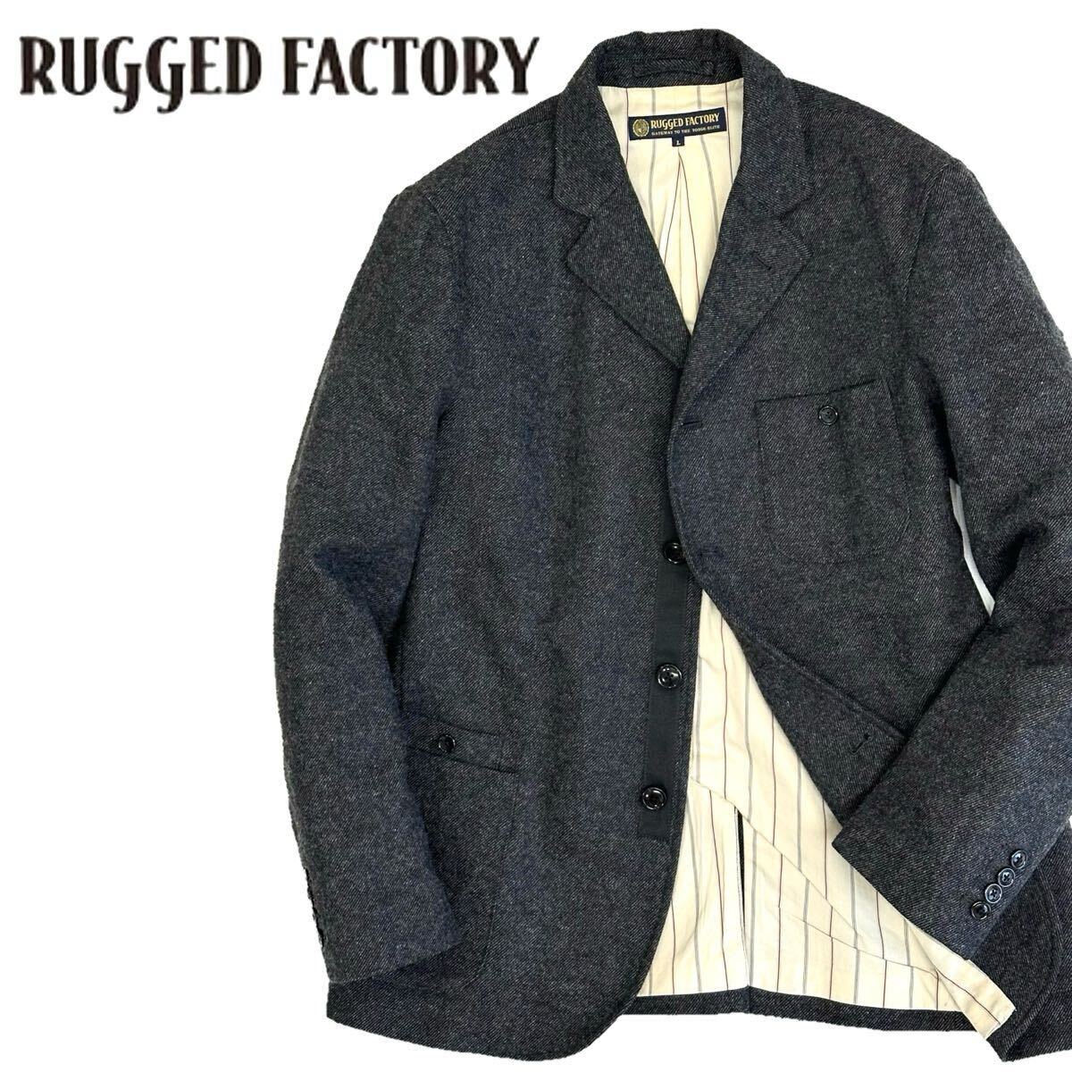 > 美品!!RUGGED FACTORY ツイード ワーク ジャケット(L)ダークグレー メンズ テーラード ラギッドファクトリー