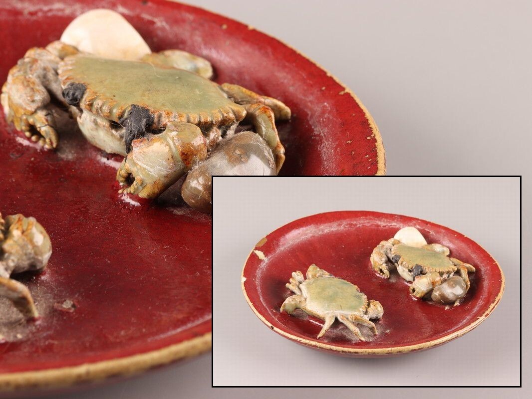 - 古美術 唐物 清代 辰砂 蟹 皿 時代物 極上品 初だし品 D1868