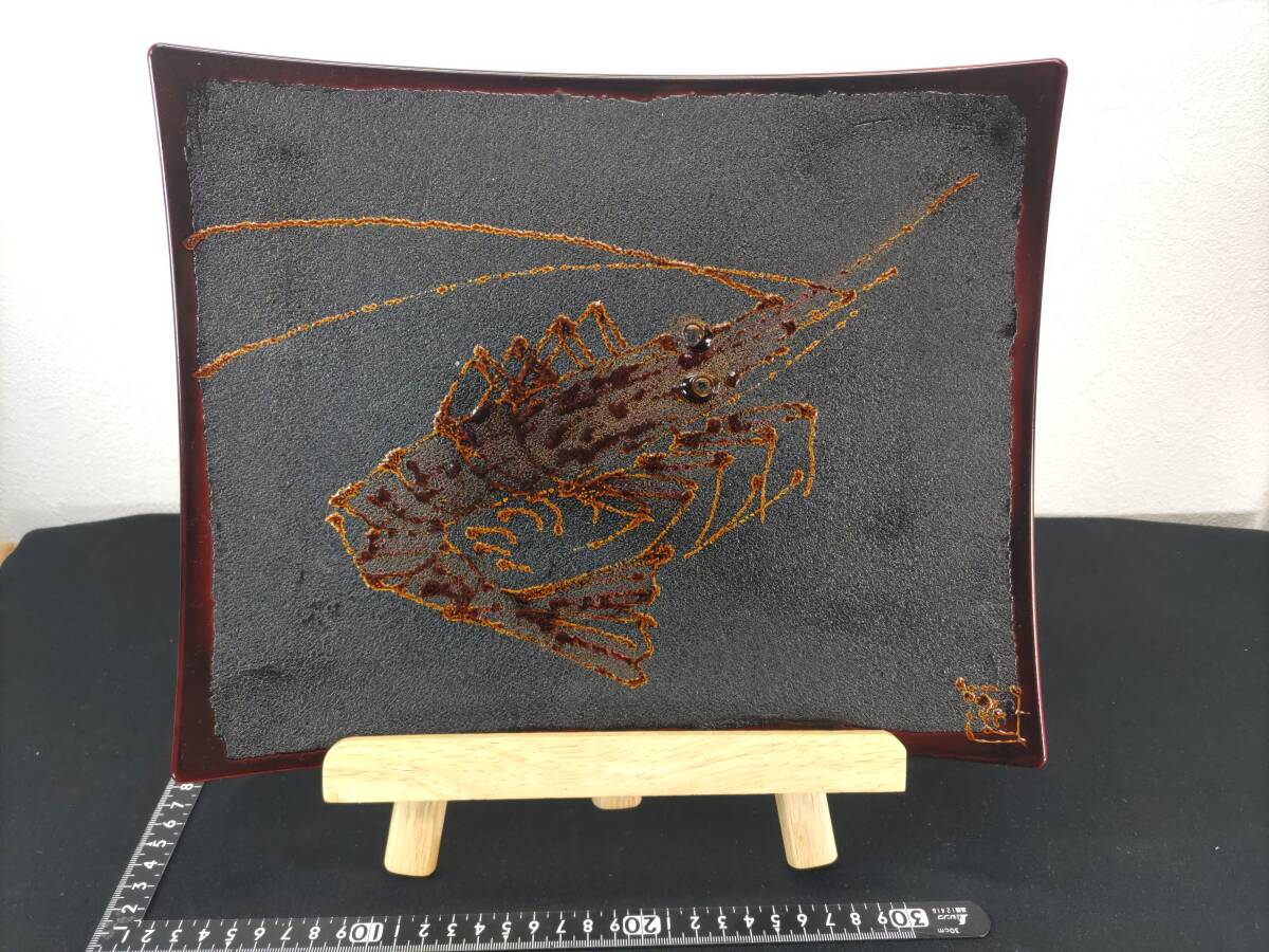 - ■送料無料!■蒔絵・H4×W32×D25cm■海老■木製■無垢■天然木■一器多様・盛り皿■トレイ■伝統工芸品!