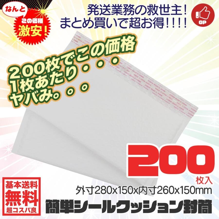 > 【 耐水タイプ】宅配袋 テープ付クッション封筒 プチプチ緩衝材 梱包用品 プチプチ袋 紙袋 内寸 260x150mm 200枚入【送料無料】