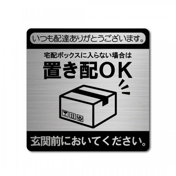 - 日本製 置き配OK ステッカー ヘアライン ブラック 【新品即決】 高耐候 防水 耐光 UVカット 80X80mm 賃貸住宅 宅配便 置き配OK 玄関前に