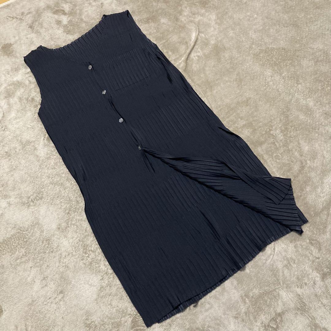 - ノースリーブワンピース 黒 プリーツ シャーリング 韓国 カーディガン 古着
