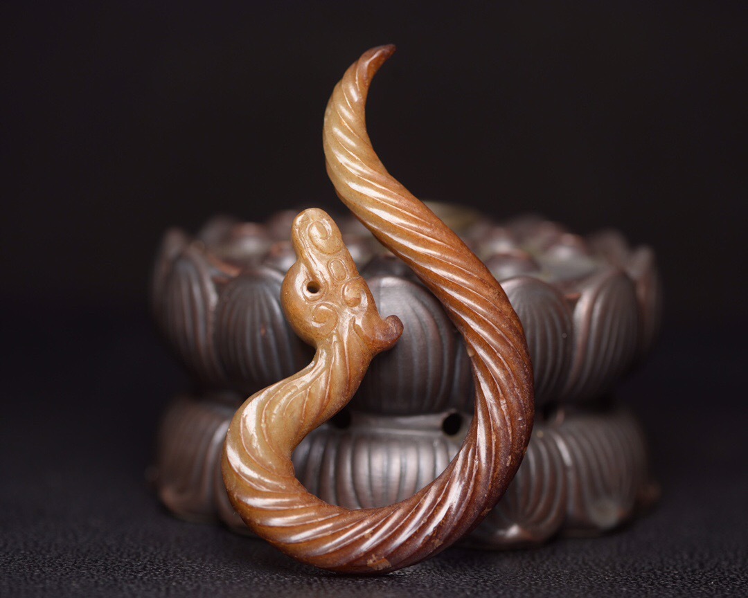 - 【超珍館蔵】和田玉製 細密彫 玉龍 置物 古賞物 古美術品 稀少珍蔵品
