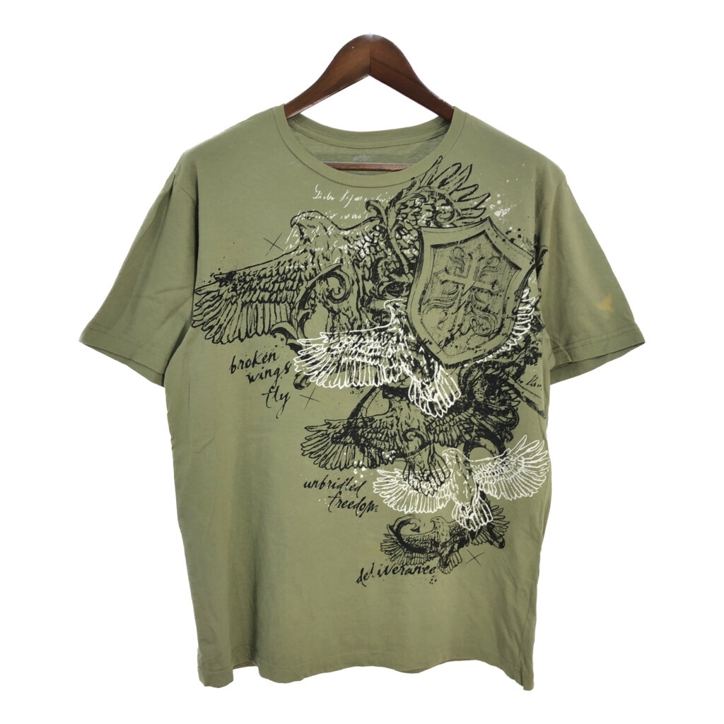 - no boundaries アフリクション系 y2k 半袖Tシャツ 総柄 オリーブ(メンズ M)中古 古着 T6226