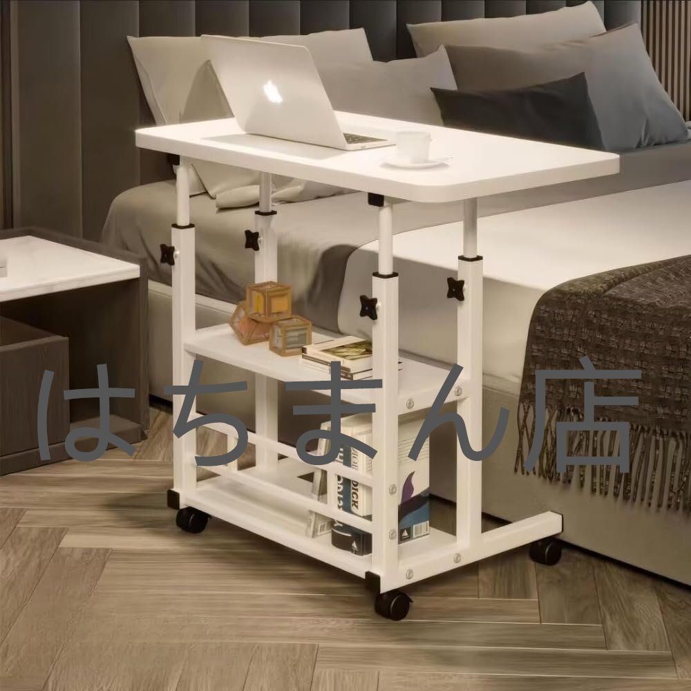 - サイドテーブル ベッドサイドテーブル キャスター付き 昇降式テーブル デスク パソコンデスク pcデスク 移動式テーブル (白です,60*40cm)