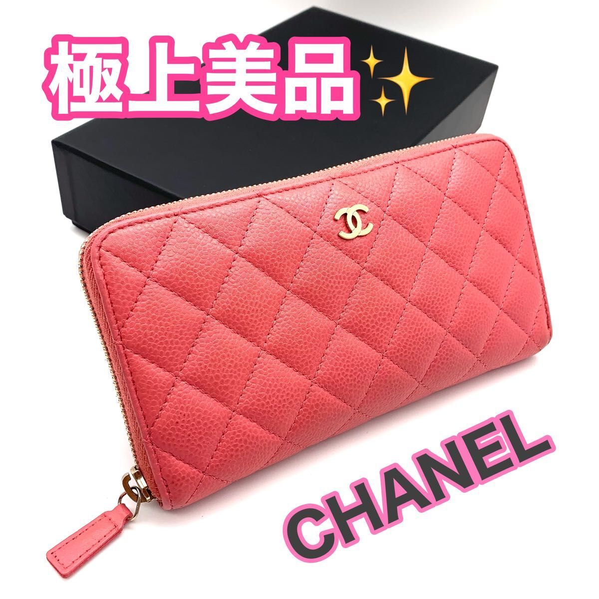 - 極上美品! CHANEL シャネル マトラッセ キャビアスキン ピンク ココマーク ジッピーウォレット 長財布 K20