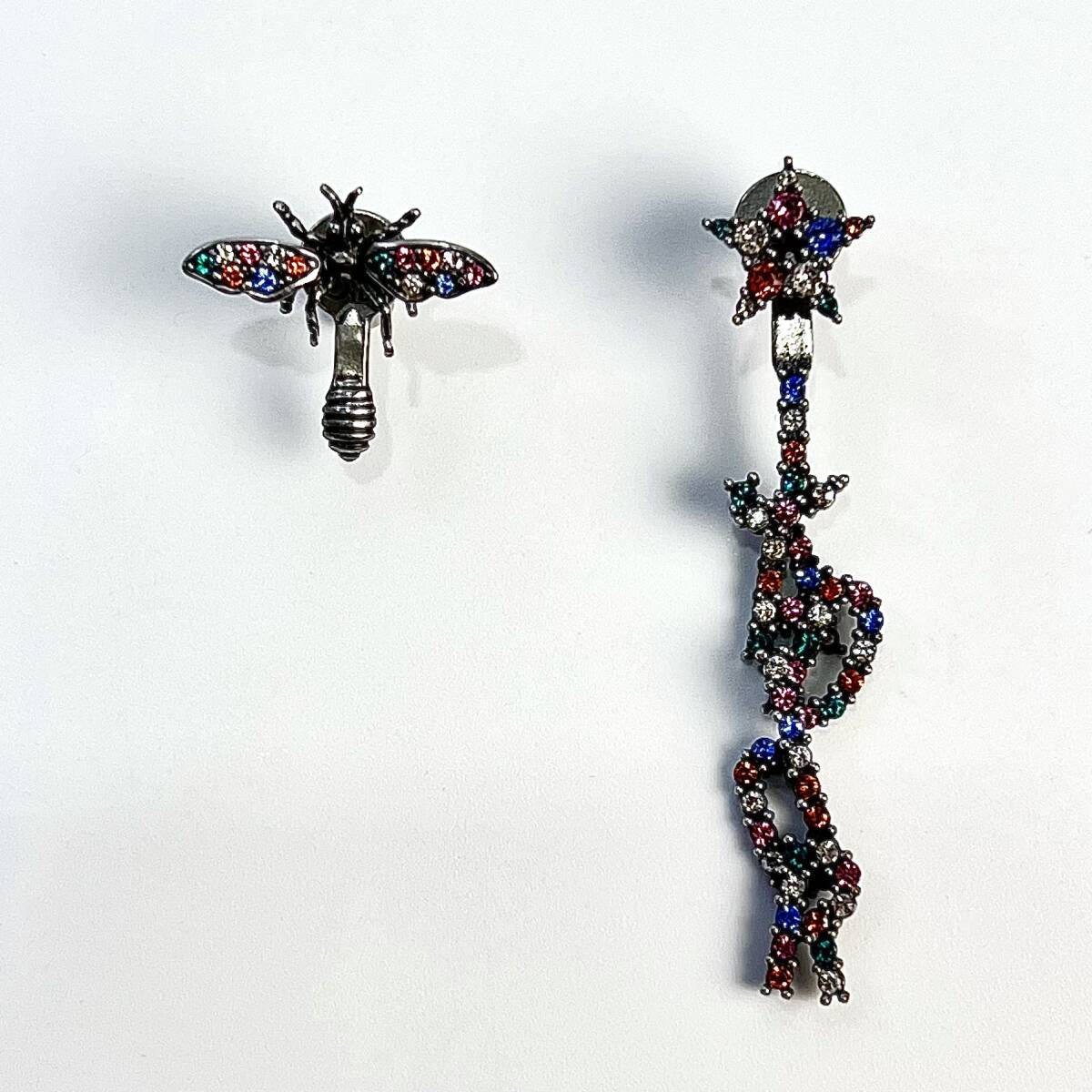 - Dior ディオール J'A DIOR Bee ラインストーン アシンメトリー ピアス マルチカラー レディース .キャッチ・スタッドピアス 美品