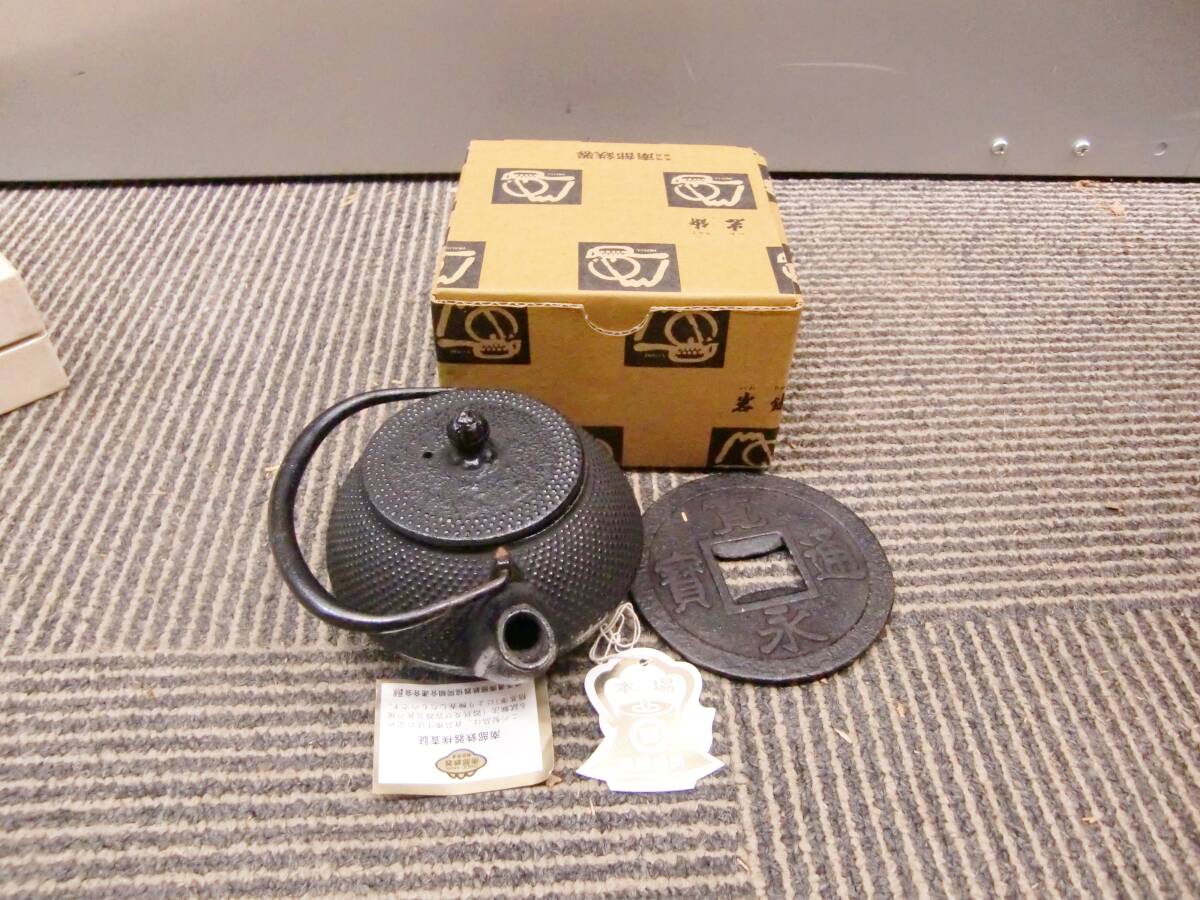 - 未使用 南部鉄器 鉄瓶 岩鋳 あられ 箱付 伝統工芸 和小物 昭和レトロ 鉄製 室内長期保管品